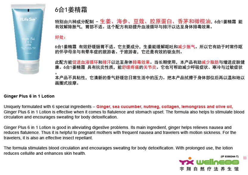 6 in 1 Lotion~ 在运动之前, 把此 lotion 搽在欲瘦身效果的身体部分如 肚腩,大腿内则,腰部等等,此lotion 将会协助燃烧身体多余的脂肪,协助排出更多的汗,达到瘦身排毒最佳效果!