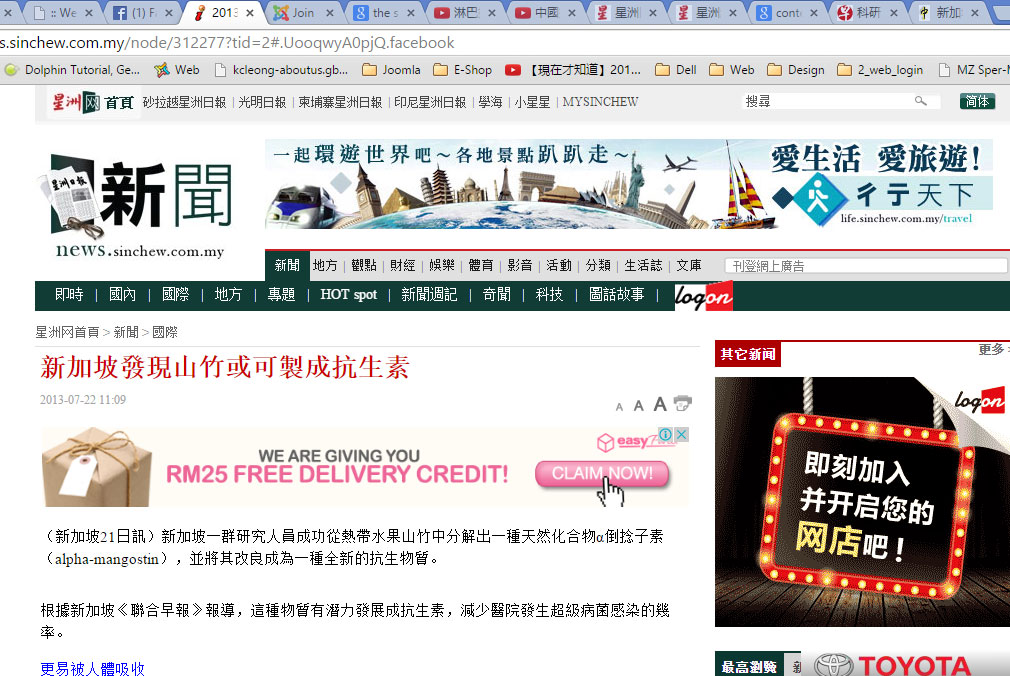 (新加坡21日訊)新加坡一群研究人員成功從熱帶水果山竹中分解出一種天然化合物α倒捻子素(alpha-mangostin),並將其改良成為一種全新的抗生物質。根據新加坡《聯合早報》報導,這種物質有潛力發展成抗生素,減少醫院發生超級病菌感染的幾率。
